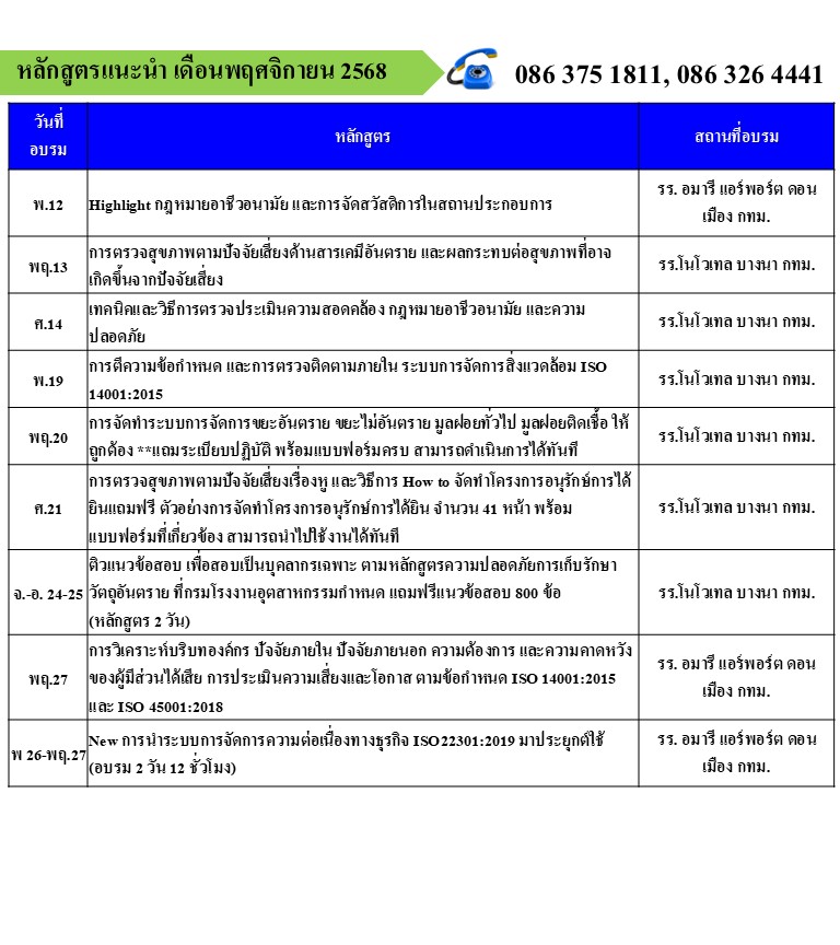 v จัดทำสรุปสาระสำคัญของกฎหมาย โดยทีมงานที่ปรึกษาด้านการจัดการสิ่งแวดล้อม ด้านอาชีวอนามัยและความปลอดภัย